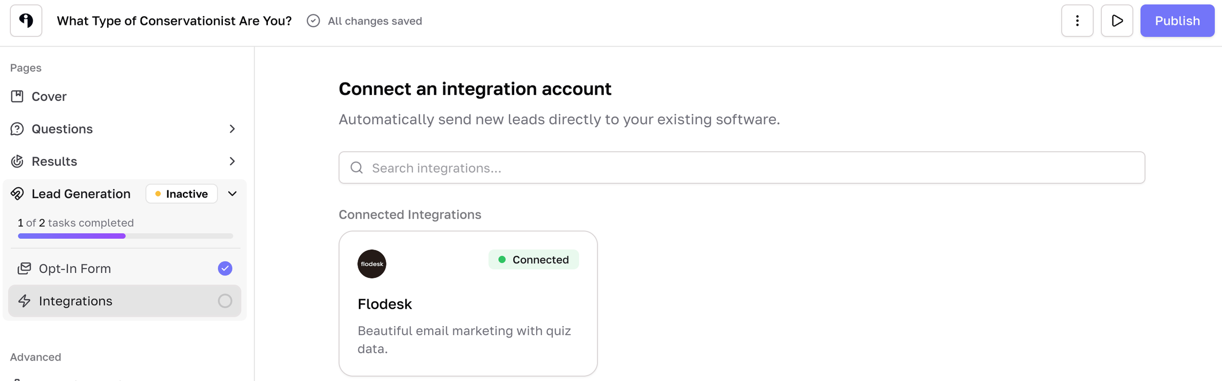 Follow the steps to connect to your platform (it works with Mailchimp, Flodesk, ActiveCampaign, Klaviyo, MailerLite and many others). After you publish, you’ll be able to copy the direct link or embed onto your website.